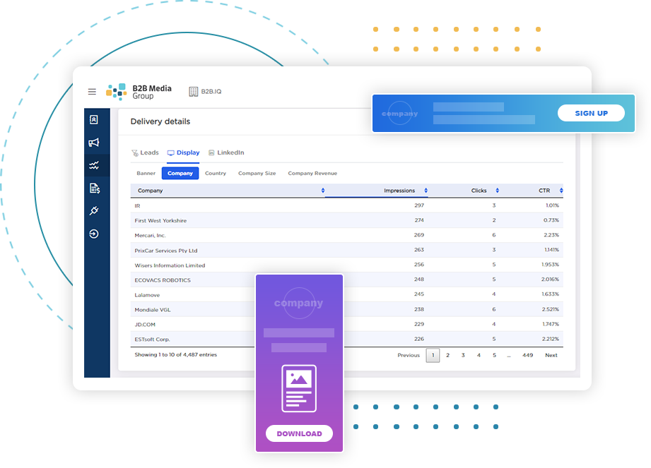 Unsere Display-Lösungen ermöglichen Ihnen eine weitreichende globale Präsenz. Definieren Sie Ihre Zielgruppe inhaltlich oder firmenspezifisch für Account Based Display Kampagnen. Mit unseren KI-gestützten Tools identifizieren wir genau die richtigen Zielgruppen für Ihr Unternehmen. In Kooperation mit über 100 Werbenetzwerken garantieren wir, dass Ihre Werbebotschaften global Entscheider in redaktionellen Umfeldern erreichen - eben da, wo sie gerade sind!