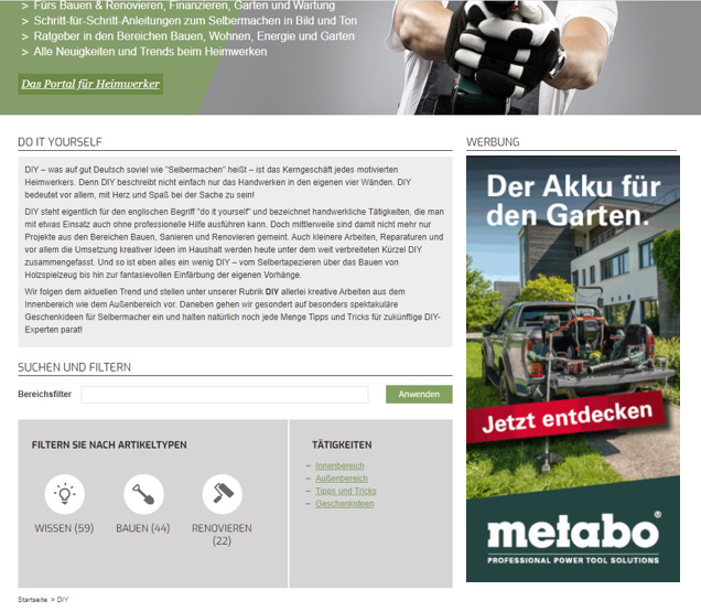 advertising exactly where their target persons are looking. And that’s exactly what it was all about when Metabo approached us to bring its battery gardening range to the right target group.