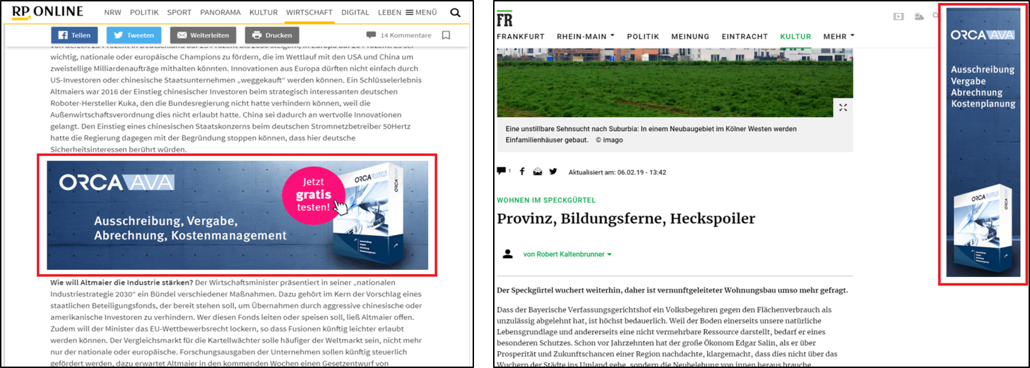 - Zielgerichtetes Ausspielen von Display-Bannerwerbung an die ORCA Kernzielgruppe Architekten, Planer und Ingenieurbüros.